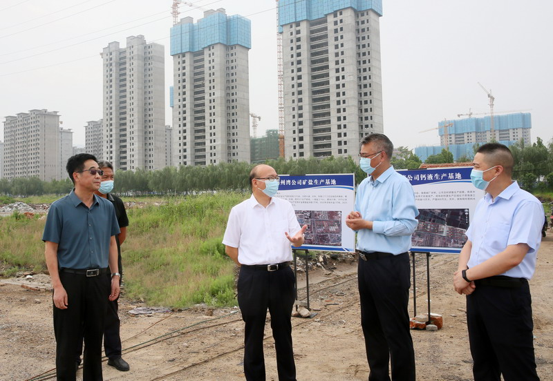丁銳一行先后到海州灣公司礦鹵復產、翔立市政工程、海州灣工業(yè)園、鈣液生產區(qū)域和美多利科技創(chuàng)業(yè)園等現場,詳細了解鹽業(yè)生產、項目建設、土地開發(fā)、安全管理等情況,并為奮戰(zhàn)在一線的員工送去防暑降溫物品。
