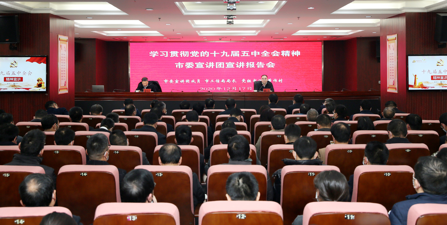 根據市委統(tǒng)一部署,12月17日,市委宣講團來集團開展黨的十九屆五中全會精神宣講活動。市委宣講團成員、工信局局長、黨組書記董作村作宣講報告。集團公司黨委書記、董事長楊龍主持宣講報告會。