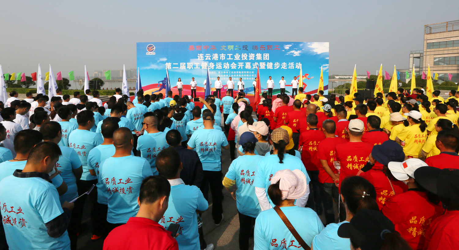 金秋十月,丹桂飄香。10月24日上午,美麗的徐圩新區(qū)云湖廣場彩旗招展,歌聲飛揚,為慶祝中華人民共和國成立70周年,豐富職工業(yè)余文化生活,由集團公司、集團公司工會主辦,徐圩投資公司承辦的集團第二屆職工健身運動會開幕式暨健步走活動在這里隆重舉行。集團公司黨委書記、董事長楊龍宣布第二屆職工健身運動會開幕,并為健步走活動發(fā)令。總經(jīng)理胡建明致開幕詞。工會主席劉承志主持開幕式。 本次運動會圍繞“美麗中華·文明工投·快樂職工”活動主題,來自全公司各條戰(zhàn)線的17支代表隊1200多人次的運動員參加拔河、跳繩、乒乓球、健步走等項目的角逐。他們以勇奪第一、超越自我的競賽精神和攜手奮進、合力拼搏的競賽風尚,充分展示工投人追求卓越、共建和諧的優(yōu)秀精神風貌。本次運動會將對個人單項比賽前六名、集體項目比賽前三名及道德風尚獎獲得者給予表彰。