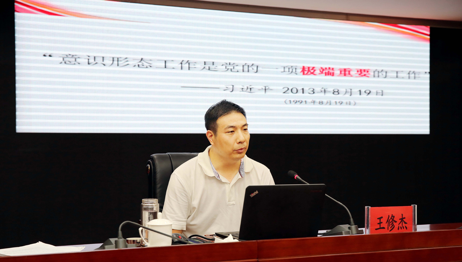 王修杰以“牢牢掌握意識形態(tài)工作的領(lǐng)導(dǎo)權(quán)”為題,結(jié)合國際國內(nèi)形勢和我市實際,圍繞充分認識意識形態(tài)工作的極端重要性、深刻把握當前意識形態(tài)領(lǐng)域復(fù)雜形勢、全面落實黨委意識形態(tài)工作責(zé)任制等方面內(nèi)容,深入淺出的剖析解讀了意識形態(tài)工作的基本內(nèi)涵、重大意義,報告主題鮮明、內(nèi)涵深刻、闡述透徹、聯(lián)系實際、條理清晰,既有理論思考、又有經(jīng)驗總結(jié),為與會人員深刻理解和把握新時代國企意識形態(tài)工作的新使命、新要求、新任務(wù)、新方法具有很強的現(xiàn)實指導(dǎo)意義。