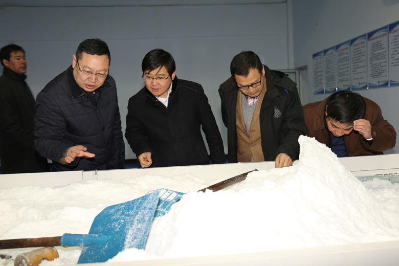 2月7日下午,江蘇省鹽業(yè)集團(tuán)副總經(jīng)理鄭海龍一行在集團(tuán)公司副總經(jīng)理?xiàng)顕?guó)新陪同下到金橋制鹽公司調(diào)研考察。鄭總一行先后參觀(guān)了該公司雪花鹽車(chē)間、加工鹽車(chē)間、包裝鹽車(chē)間,對(duì)該公司生產(chǎn)環(huán)境、硬件設(shè)施、車(chē)間布局、生產(chǎn)工藝等給予了充分肯定。隨后,雙方圍繞產(chǎn)品結(jié)構(gòu)、價(jià)格調(diào)控、渠道建設(shè)等內(nèi)容展開(kāi)討論,并就2018年的合作事宜進(jìn)行了洽談。