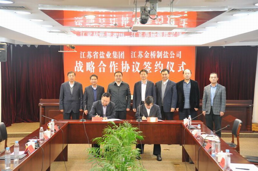 11月8日下午,金橋制鹽公司在南京與江蘇省鹽業(yè)集團(tuán)簽署戰(zhàn)略合作協(xié)議。集團(tuán)公司董事長(zhǎng)、黨委書記楊龍,副總經(jīng)理?xiàng)顕?guó)新以及金橋制鹽公司負(fù)責(zé)人參加了簽約儀式。簽約儀式前,楊龍董事長(zhǎng)與省鹽業(yè)集團(tuán)總經(jīng)理唐正東、副總經(jīng)理鄭海龍以及相關(guān)部門負(fù)責(zé)人就應(yīng)對(duì)食鹽改革舉行了工作會(huì)談。