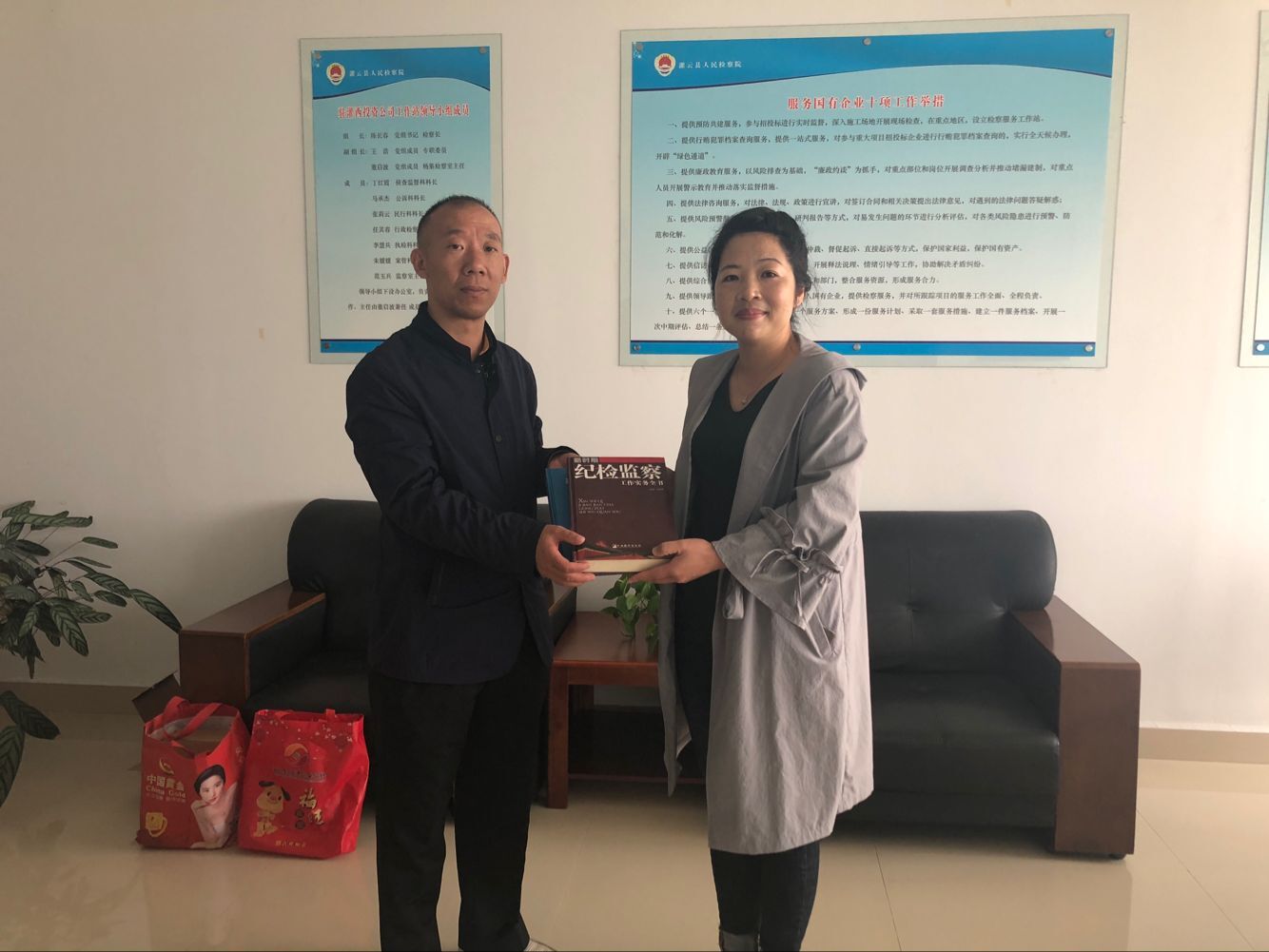 10月17日,灌云縣檢察院監(jiān)察室主任范玉兵到灌西投資公司紀(jì)委調(diào)研工作,進(jìn)一步加強(qiáng)檢察院與企業(yè)溝通和了解,促進(jìn)“檢企共建”活動(dòng)深入開(kāi)展。