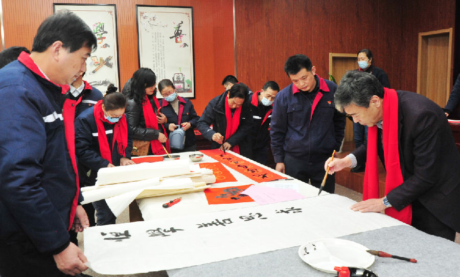 “千門(mén)萬(wàn)戶(hù)曈曈日,總把新桃換舊符。”迎新春、貼春聯(lián),是中華民族的傳統(tǒng)習(xí)俗。為了弘揚(yáng)傳統(tǒng)文化,營(yíng)造喜慶祥和的節(jié)日氛圍,2022年1月14日,氨綸公司工會(huì)開(kāi)展了“迎新春,送春聯(lián)”活動(dòng)。邀請(qǐng)到省市書(shū)協(xié)書(shū)法名家現(xiàn)場(chǎng)揮毫潑墨,為職工送上新春的祝福。