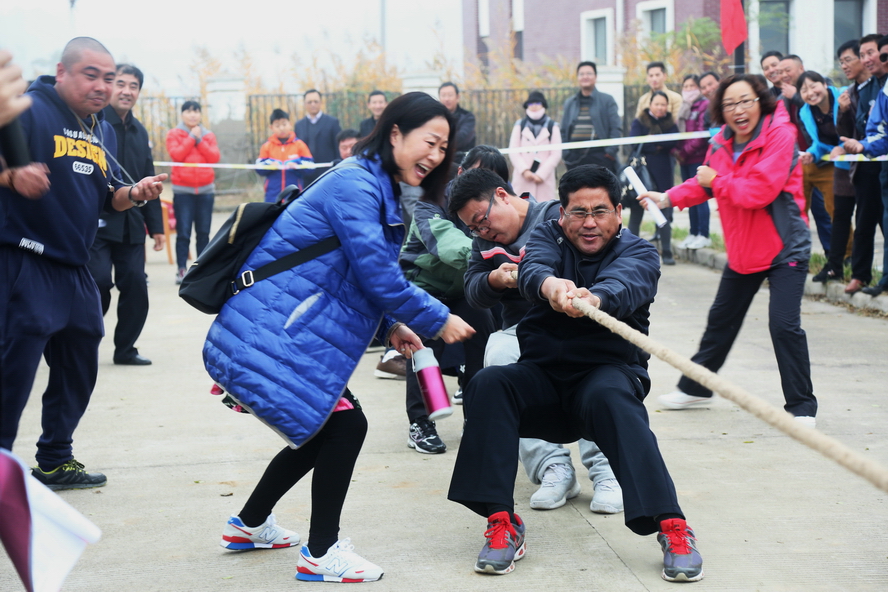 11月19日,美多利科創(chuàng)園內(nèi)彩旗招展、樂聲飛揚,臺北投資公司2016年度職工運動會在這里隆重舉行。來自公司機關(guān)及基層單位的11支代表隊共186名運動員在拔河、集體跳繩、“團(tuán)結(jié)奮進(jìn)”、“運轉(zhuǎn)乾坤”、“財源滾滾”、“齊心協(xié)力”、“車輪滾滾”、“摸石頭過河”、雙人踢毽、定點投籃等10個比賽項目中展開角逐。