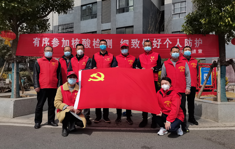 除了在崗員工,還有退休黨員秦英、孫芳等,在疫情發(fā)生前,他們是公司內(nèi)退黨員,在疫情爆發(fā)以后,他們是無所畏懼的抗疫戰(zhàn)士。隨著連云港開始第一輪全員核酸檢測,工作人員和志愿者都嚴(yán)重短缺,每天確診病例激增的數(shù)據(jù)都令人觸目驚心。當(dāng)看到招募志愿者的公告時,秦英熱血沸騰。“黨和人民需要我,我的家鄉(xiāng)需要我!”主動聯(lián)系海州區(qū)幸福路街道西大嶺社區(qū),在咨詢志愿者報名的同時,鄭重地并向社區(qū)遞交了一份疫情防控“請戰(zhàn)書”。