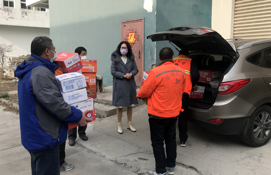 大年初四,在瑞泰服務(wù)公司現(xiàn)場(chǎng),車(chē)隊(duì)的駕駛員們正在從車(chē)上搬下一箱箱快餐面、火腿腸等食品。車(chē)隊(duì)隊(duì)長(zhǎng)汪永勤說(shuō):“為應(yīng)對(duì)疫情防控,大家響應(yīng)公司的號(hào)召,車(chē)隊(duì)10多名駕駛員春節(jié)沒(méi)有放假全部堅(jiān)守崗位,每天加大清掃車(chē)、灑水車(chē)作業(yè)頻次、作業(yè)時(shí)間,保障園區(qū)道路環(huán)境衛(wèi)生,助力戰(zhàn)“疫”,但是食堂不能開(kāi)火,部分職工離家遠(yuǎn),中午吃飯就成了問(wèn)題。這不,公司工會(huì)一早就把這些食品送來(lái),幫我們解決了問(wèn)題。”