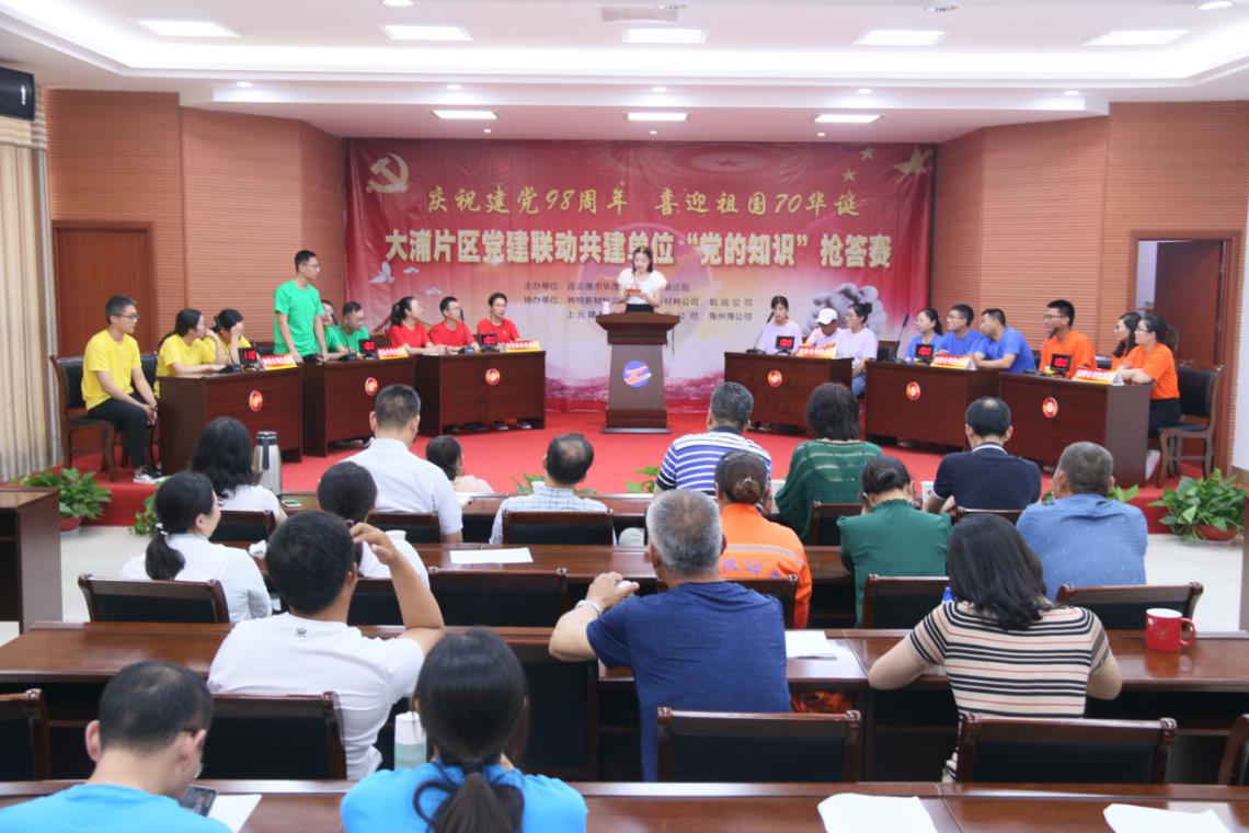 6月29日,大浦片區(qū)“1+6”黨建聯(lián)動(dòng)共建單位再次相聚華茂,聯(lián)合舉辦“慶祝建黨98周年,喜迎祖國(guó)70華誕”“黨的知識(shí)”搶答賽活動(dòng),共建單位領(lǐng)導(dǎo)及黨員代表觀看了比賽。