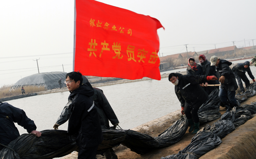 11月16日,一面紅色的黨員志愿者服務隊隊旗在陽光下飄展,在一片雪白結(jié)晶池埝的映襯下,顯得格外鮮艷。徐圩投資公司深港服務區(qū)12名黨員志愿者頂著寒冷的晨風,緊忙趕往新灘服務區(qū)原料鹽基地建設現(xiàn)場,幫助其12個單元搶裝池埝土工布,也為這個冬天添加幾許新鮮的氣息。