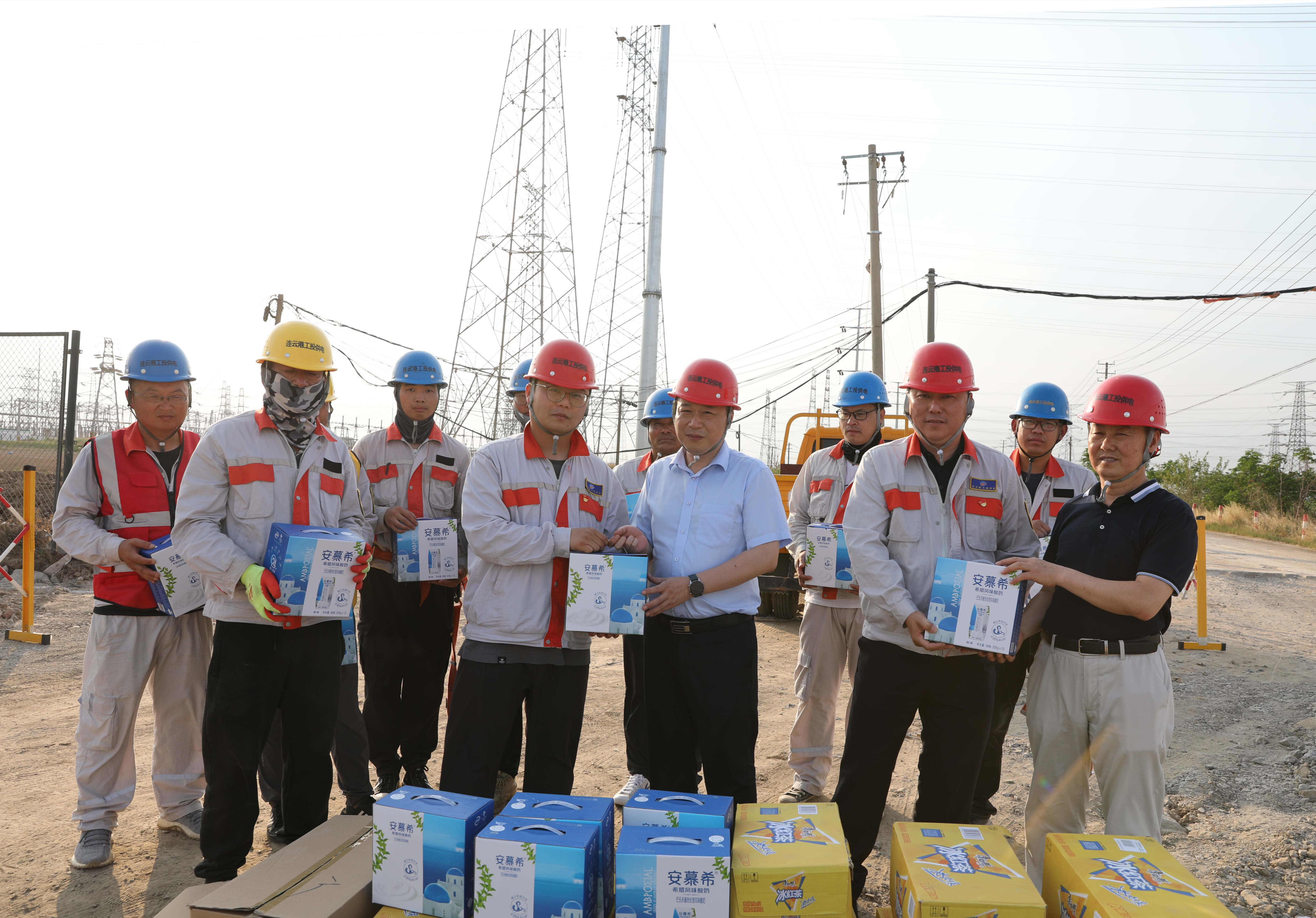 連續(xù)幾天,連云港市進(jìn)入高溫天氣??崾町?dāng)頭,德邦廠區(qū)段電力桿線遷改工程施工人員卻堅(jiān)守在施工一線,冒著三十幾度高溫,奮戰(zhàn)在施工現(xiàn)場,加班加點(diǎn)保障著工程建設(shè)的進(jìn)度。為切實(shí)做好一線施工人員防暑降溫工作,6月21日下午,公司黨委書記、總經(jīng)理宋晟曄、黨委副書記、工會主席王志軍一行人來到德邦電力桿線遷改工程的施工現(xiàn)場,把冰紅茶、西瓜等防暑降溫物品送到施工人員手中,給堅(jiān)持奮戰(zhàn)在高溫一線的職工送去了公司滿滿的關(guān)懷和夏日里的一份清涼。(邱利益)