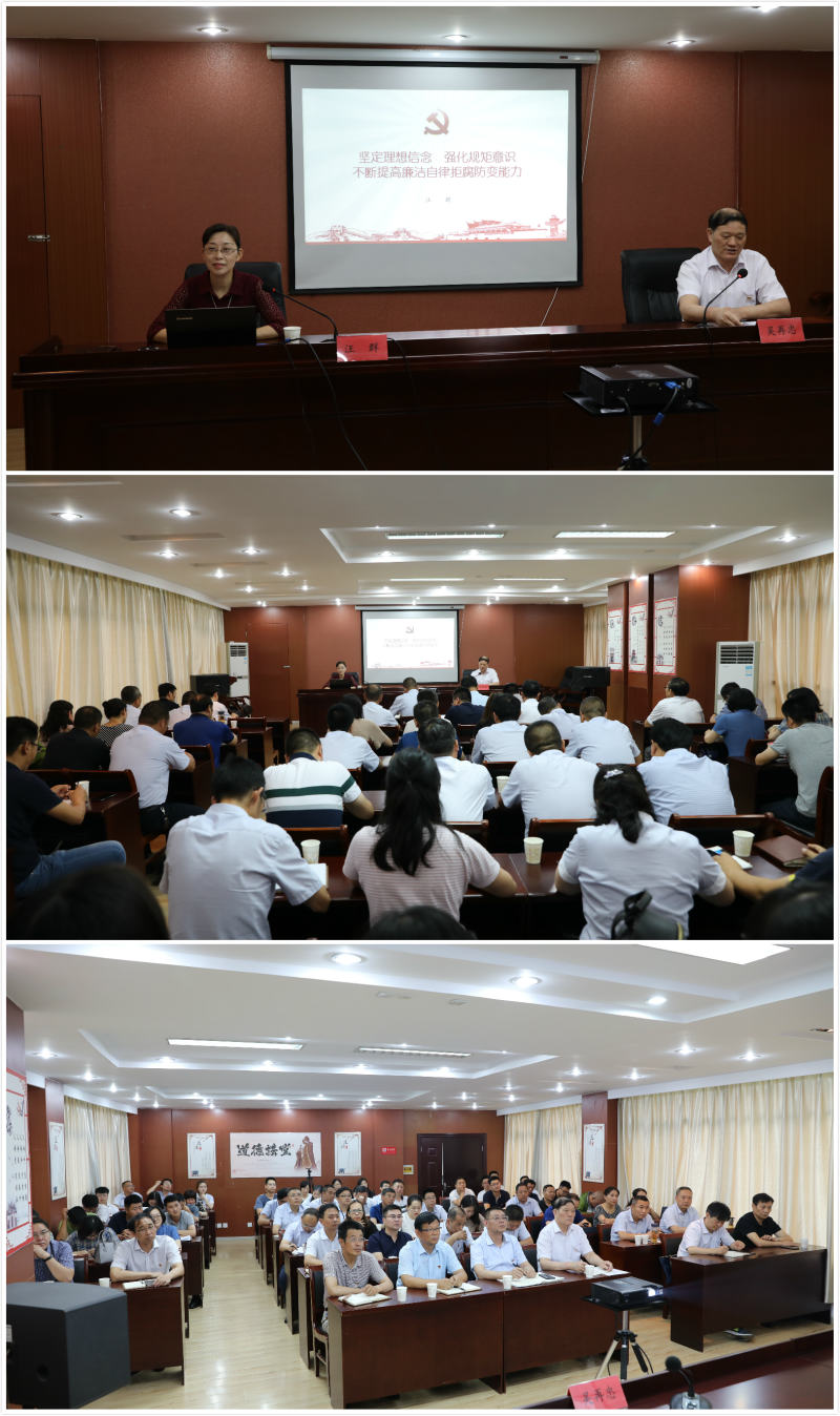 7月16日下午,集團(tuán)公司紀(jì)委書記汪群在金橋房地產(chǎn)黨群服務(wù)中心會議室,為供電公司和房地產(chǎn)公司部分黨員講了一堂以“堅定理想信念,強(qiáng)化規(guī)矩意識,不斷提高廉潔自律拒腐防變能力”為主題,以黨風(fēng)廉政教育與反腐敗警示教育為主要內(nèi)容的專題黨課。雙方單位的領(lǐng)導(dǎo)班子成員、各基層單位班子成員、各部門負(fù)責(zé)人以及涉及招標(biāo)采購、工程建設(shè)、財務(wù)審計等崗位相關(guān)人員參加黨課。黨課由供電公司黨委書記吳再忠主持。