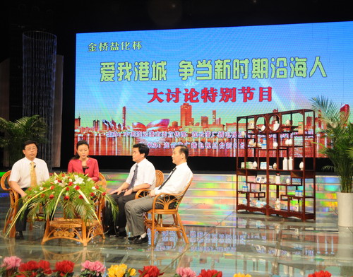 在節(jié)目現(xiàn)場, 顧永庚董事長首先為大家展示了集團(tuán)公司化工和加工鹽等各種特色產(chǎn)品。其后,顧永庚董事長介紹了集團(tuán)公司在江蘇沿海開發(fā)戰(zhàn)略實施兩年來所取得的輝煌成就,圍繞沿海開發(fā)過程中金橋鹽化具有的獨特區(qū)域和資源優(yōu)勢、“十二五”發(fā)展目標(biāo)定位、“創(chuàng)建名牌企業(yè),共架幸福金橋”的奮斗目標(biāo)等方面與嘉賓、觀眾進(jìn)行了深入探討。