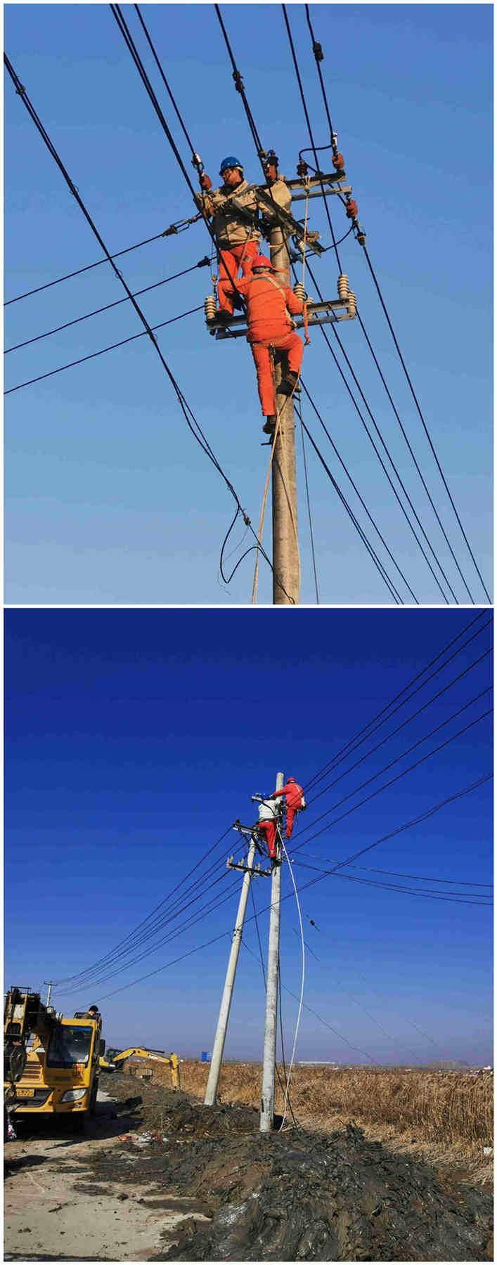 2月20日下午4點(diǎn)48分,青口供電所接到電話通知,黃沙分場送水道挖掘機(jī)施工碰倒10千伏養(yǎng)殖線電桿造成整個(gè)黃下線停電,請(qǐng)該所盡快派人處理。該所值班領(lǐng)導(dǎo)迅速組織線路工到達(dá)現(xiàn)場,經(jīng)勘察發(fā)現(xiàn)12米3向轉(zhuǎn)角桿電桿碰斷一根,120高壓導(dǎo)線拉斷3根.。為了不影響其他用戶正常用電,果斷將養(yǎng)殖線斷路器分離,恢復(fù)黃下線其他線路正常供電。同時(shí)上報(bào)公司領(lǐng)導(dǎo),聯(lián)系機(jī)械及準(zhǔn)備搶修所需材料。當(dāng)下正值養(yǎng)殖池塘進(jìn)水期間,為了盡快恢復(fù)養(yǎng)殖線供電,2月21日早上7點(diǎn),搶修人員全部到位并進(jìn)行安全交底及人員分工安排。7點(diǎn)30分所有機(jī)械到位,進(jìn)行立桿、拔桿、地錨安裝、更換導(dǎo)線等系列工作。