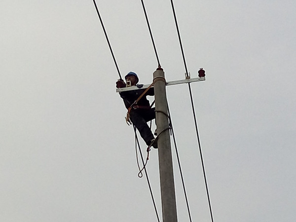 隨著臺(tái)南養(yǎng)殖線改造工程的正式施工,供電公司前期新招聘的外線工正式上桿作業(yè)。