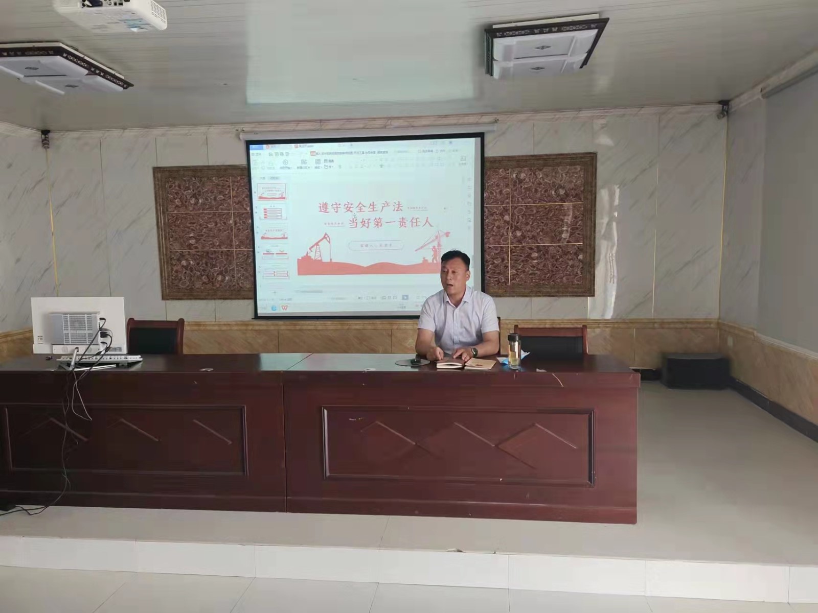此次宣講共涉及到兩項議程,一是通過PPT向職工講解安全生產(chǎn)月簡介、安全生產(chǎn)措施十五條、安全生產(chǎn)基礎(chǔ)知識、以及企業(yè)安全應(yīng)知應(yīng)會等安全理論知識。二是通過觀看《生命重于泰山》安全教育片,讓職工們知道了安全生產(chǎn)、重于泰山,安全是在工作中時刻圍繞在我們工作的主題,是企業(yè)發(fā)展的永恒主題,安全生產(chǎn)是涉及到每個員工的生命安全問題,同時也關(guān)系到企業(yè)的生存發(fā)展和穩(wěn)定。