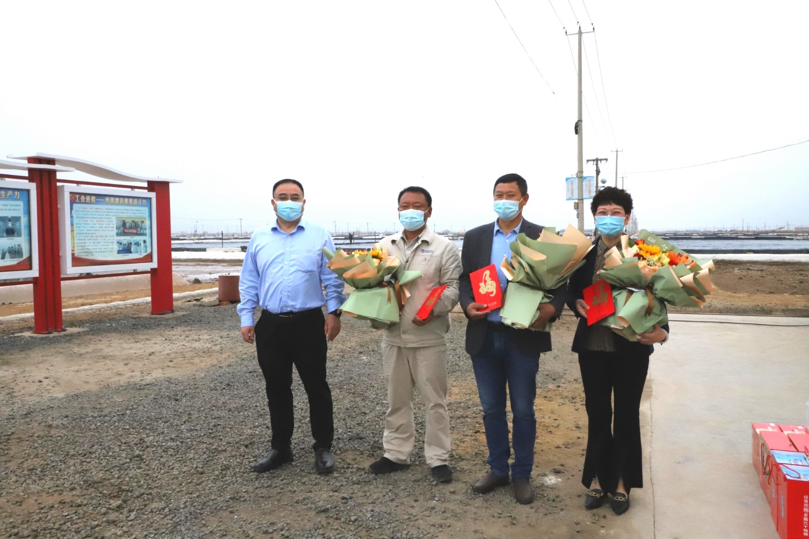 4月25日上午,楊龍董事長一行帶著鮮花和慰問,來到日曬制鹽新河制鹽分公司八班看望了灌西勞模代表王緒華、祝星星、王宏,與他們親切交談,聊家常、問冷暖,將黨的關(guān)懷、工會的問候送到他們手中、心中。與此同時,楊龍還慰問了八班全體員工,給他們送來餅干、八寶粥、飲用水等慰問品。