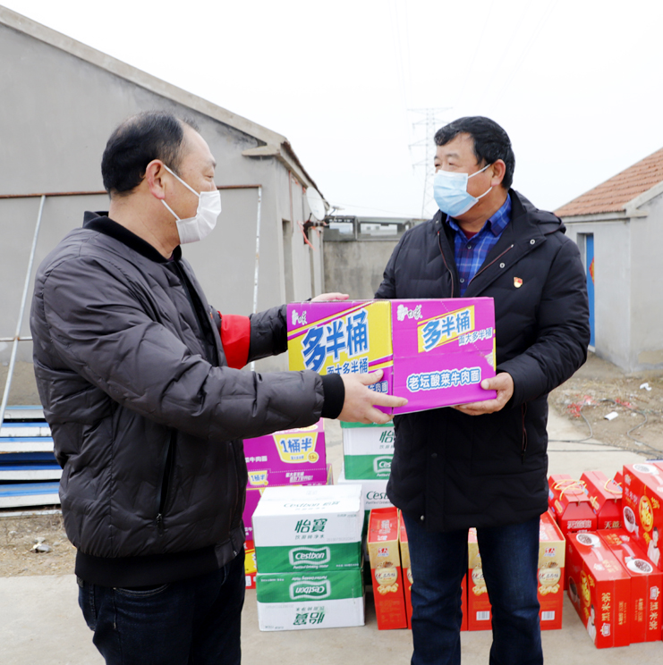 2月14日下午,王貴華、仇海軍兩位愛心人事委托灌西水產(chǎn)養(yǎng)殖服務(wù)公司經(jīng)理劉海勇,幫價(jià)值6000余元的礦泉水、方便食品送到奮戰(zhàn)在防疫一線的職工手中。劉海勇代表兩位愛心人事對(duì)疫情防控一線的職工舍小家、顧大家,眾志成城、抗擊疫情的奉獻(xiàn)精神表示崇高的敬意,希望防控人員加強(qiáng)自身防護(hù),注意身體健康。