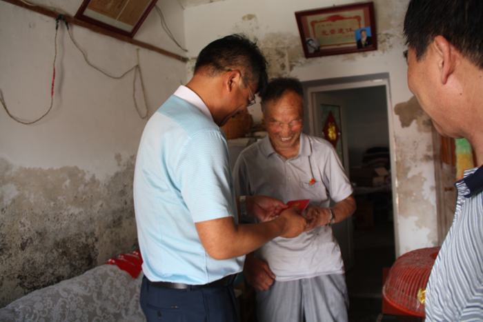 在參加過抗日戰(zhàn)爭的老黨員方健家中,王德志書記與方老親切交談,一起重溫他在革命戰(zhàn)爭年代的光輝事跡,對老黨員們在革命戰(zhàn)爭年代、社會主義建設(shè)時期,為國家的解放事業(yè)和現(xiàn)代化建設(shè)事業(yè)作出的不可磨滅的貢獻表示衷心的感謝。方老雖然已經(jīng)八十多歲的高齡,身體很健康,精神矍鑠,十分健談,他表示,感謝黨組織關(guān)心,自己年紀(jì)大了,也不能為黨為企業(yè)做什么貢獻了,但仍時刻關(guān)心國家大事,關(guān)注公司的發(fā)展,謹(jǐn)守黨員本分,積極支持公司黨委工作,堅決不給組織添麻煩。王德志書記一行還分別走訪慰問了老黨員王連山、卜玉喜和困難黨員許佃來等,王德志書記指出,這些老黨員是我們黨組織的“寶貝”,他們有著強烈的黨員意識,對我們黨有著堅定的信仰,值得每一個黨員,尤其是年輕黨員學(xué)習(xí)。他強調(diào),關(guān)愛老黨員和生活困難黨員是我們黨的優(yōu)良傳統(tǒng),也是我們基層黨組織的重要職責(zé)。我們要通過與老黨員們的溝通,了解他們的困難,關(guān)心他們的思想和生活,使他們生活上得到幫扶、精神上得到激勵,切身感受到了黨組織的關(guān)懷和溫暖。(季興勝)