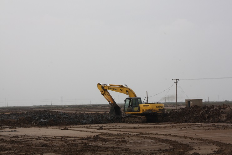 10月20日,我們在原來的鈣液復曬灘地看到,整個復墾區(qū)一眼望去,灘地象被翻過一遍,原來的鹽格灘池已經(jīng)面目全非,只見三臺挖掘機正揮舞巨臂,將淤泥挖出涼曬。南翼公司工程項目組長期值守在項目工地,跟蹤管理,積極推進工程安全有序推進。