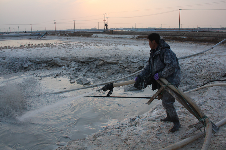 11月30日下午,我們?cè)谯现汽}分公司十一班看到,該班組員工在班長(zhǎng)章保衛(wèi)的帶領(lǐng)下,正有條不紊的進(jìn)行著灘地整理工作,據(jù)其介紹,在扒鹽工作結(jié)束后,該班就立即轉(zhuǎn)入到大干冬準(zhǔn)工作中,目前,除了做好灘地整理工作以外,重點(diǎn)是對(duì)除硫池進(jìn)行清理。在他的帶領(lǐng)下,我們來(lái)到該班二期除硫池旁,看到兩名工人正在池內(nèi)進(jìn)行著忙碌的硫酸鈣清理工作。池內(nèi)的硫酸鈣已經(jīng)堆積很多,有近一米高,據(jù)章保衛(wèi)測(cè)算,該除硫池內(nèi)大概已有硫酸鈣2000余立方。為了不影響明年鹵水除硫工作的正常開(kāi)展,他安排兩名工人專門進(jìn)行清理工作,每天從早上7點(diǎn)開(kāi)始進(jìn)場(chǎng)清理,直到下午5點(diǎn)結(jié)束,預(yù)計(jì)至少要20天以上才能全部清理完成。下一步該班還將按照“九項(xiàng)工程”要求,對(duì)灘地設(shè)施進(jìn)行逐一篩查,以實(shí)際行動(dòng)大干冬準(zhǔn),為明年鹽業(yè)生產(chǎn)工作有序開(kāi)展做好準(zhǔn)備。(封楊)