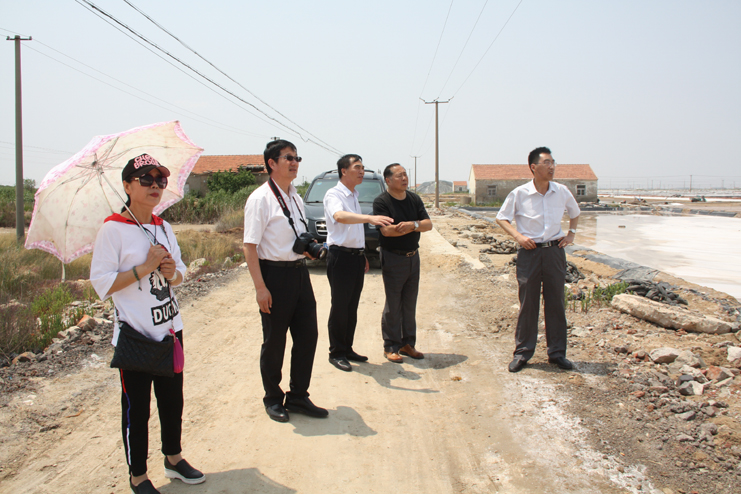 一行人先后到原民國時期公濟制鹽公司的辦公署遺址、早期產(chǎn)鹽平面灘和日曬制鹽公司的扒鹽現(xiàn)場參觀采風。具有百年歷史的原公濟制鹽公司辦公署是灌西鹽場地區(qū)現(xiàn)存最古老的建筑物,也是整個淮鹽地區(qū)僅有的遺跡,隨著歷史的變遷,房屋雖幾經(jīng)改建,破損嚴重,但主體結構仍然保留了下來,是重要的淮鹽文化物證。位于鈣液復曬區(qū)的早期產(chǎn)鹽平面灘,是前不久為央視攝制組拍攝淮鹽發(fā)展歷史而改造的制鹽平面灘,復制了過去的制鹽工藝及生產(chǎn)過程,在平面灘上,大家拿起收鹽刮板,挑起鹽筐,手推小鹽車,一一體驗一下過去鹽工們的勞動方式。在新河制鹽分公司十班的扒鹽現(xiàn)場,機聲隆隆,潔白鹽廩不斷壯大,這是日曬制鹽公司上半年最后一臺正在扒鹽的機組,其余的七臺扒鹽機組已經(jīng)先后完成的扒鹽任務,正在進行最后三塊格的扒鹽工作。大家一邊參觀,一邊拍照,通過古今不同時期產(chǎn)鹽方式對比,對過去鹽工們的艱辛勞動和現(xiàn)代制鹽技術的革新,生產(chǎn)力的提高都有了直接的感受,個個感觸頗深。(季興勝)
