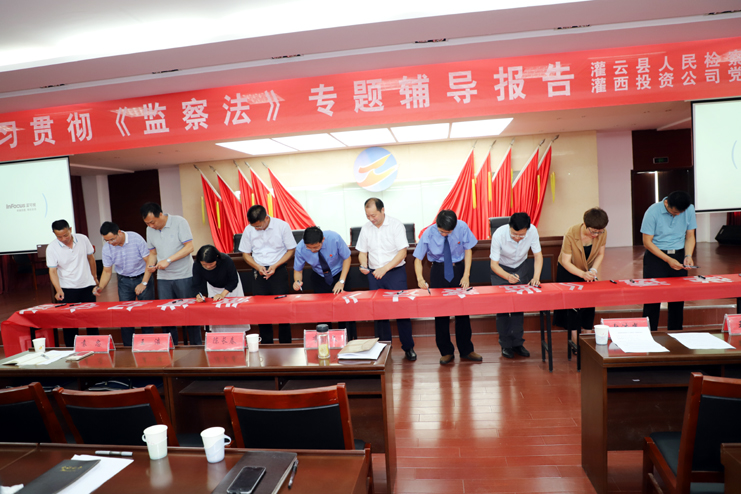 此次集中培訓(xùn)只是我公司深入學(xué)習(xí)貫徹監(jiān)察法的舉措之一,按照公司紀(jì)委統(tǒng)一部署,把監(jiān)察法納入公司干部必修課程及各類黨員培訓(xùn)內(nèi)容,通過座談會(huì)、報(bào)告會(huì)等多種形式,深化學(xué)習(xí)培訓(xùn)效果,把學(xué)習(xí)培訓(xùn)延伸到基層一線。會(huì)后全體與會(huì)人員集體在“學(xué)深學(xué)透《監(jiān)察法》,做遵紀(jì)守法國企人”橫幅上簽字承諾。(張明建)