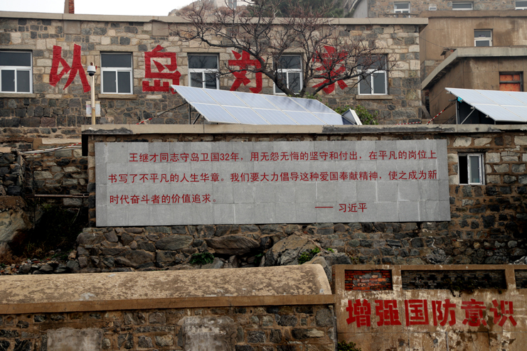 上午8點(diǎn),在發(fā)動(dòng)機(jī)巨大的轟鳴聲中,漁船緩緩駛離港口。近一個(gè)小時(shí)的顛簸,開(kāi)山島出現(xiàn)在了視野里,由小到大,逐漸清晰。簡(jiǎn)易碼頭上,守島民兵遠(yuǎn)遠(yuǎn)地沖著大家揮手,船上的人顧不上漁船的劇烈晃動(dòng),一個(gè)個(gè)扒著船沿?zé)崆榛貞?yīng)著,所有人的臉上都寫(xiě)滿敬意和期待。漁船隨著海浪的節(jié)拍上下晃動(dòng)著,班組長(zhǎng)們登上碼頭,就緊緊握住守島民兵的手,對(duì)他們守島衛(wèi)國(guó),無(wú)怨無(wú)悔堅(jiān)守和付出的愛(ài)國(guó)奉獻(xiàn)精神表示欽佩。班組長(zhǎng)們跟隨著守島民兵沿著王繼才夫婦他們當(dāng)年的巡邏路線,拾級(jí)而上,大家一邊感受巡島爬山的辛苦,一邊聆聽(tīng)著守島民兵講解王繼才夫婦32年守島的艱難困苦和生離死別。