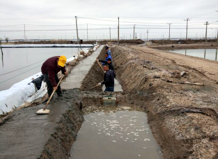 11班生產(chǎn)現(xiàn)場,職工們正在進行溝道清淤,池堰修整工作。11班是黨員模范班組,這個班冬準工作進度比別的班組快一些,班長章保衛(wèi)激情豪邁,信心飽滿,干好當前,備戰(zhàn)明年,我們班的冬準工作標準要高,質(zhì)量要硬,進度要快,要確保各項工作走在公司前列,去年冬準,我們對一期灘場進行了維護保養(yǎng),今年冬準工作重點放在二期,到2019年冬準再把一,二期灘場維修保養(yǎng)一遍,那我們公司的生產(chǎn)能力、灘容灘貌將會上一個新的臺階,將會跨進制鹽行業(yè)的前列,這是一個敢想,敢干的年輕黨員,在他的心中己經(jīng)描繪一幅日曬制鹽明天發(fā)展的美好藍圖。其他生產(chǎn)班組,有的在維護灘場,清理雜草雜物,有的在修建標準化廩基,冬準工作有序推進,處處都可以看到火熱的勞動場面。