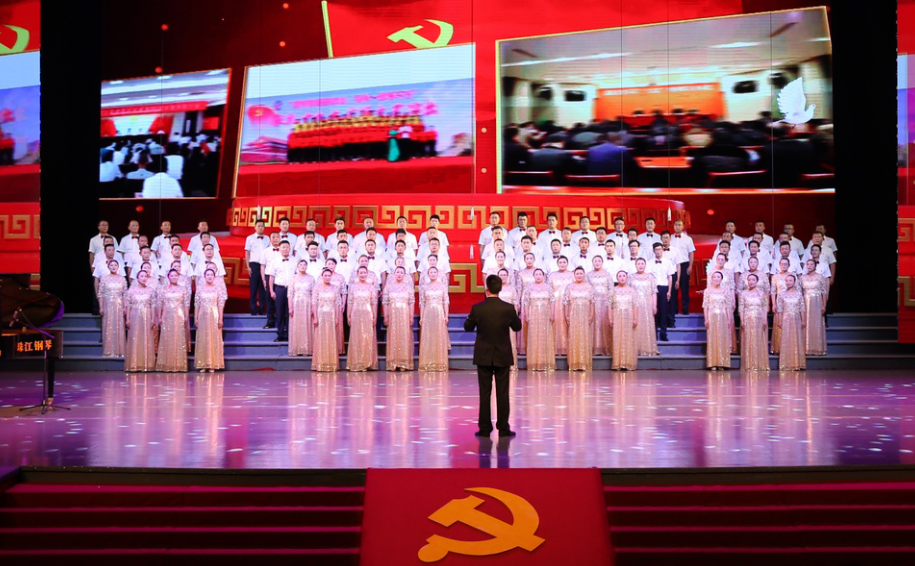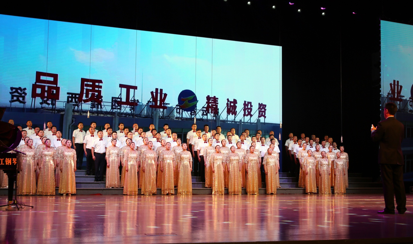 “風(fēng)在吼,馬在叫,黃河在咆哮……”嘹亮的歌聲在市藝術(shù)中心舞臺(tái)上響起, 6月28日下午,集團(tuán)公司2019年“感黨恩、頌祖國(guó)、贊工投”大合唱比賽在此隆重舉行,灌西公司百人合唱團(tuán)獲得二等獎(jiǎng),集團(tuán)黨委書(shū)記、董事長(zhǎng)楊龍為灌西合唱團(tuán)頒發(fā)獎(jiǎng)杯。