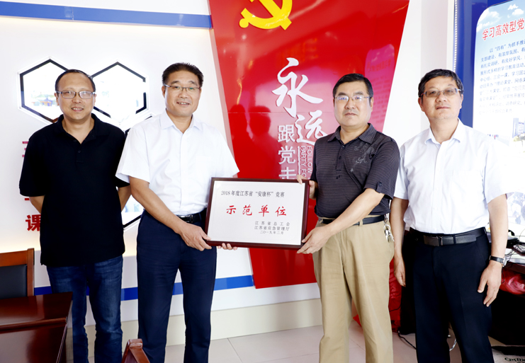 調(diào)研期間,陳健還為集團(tuán)“2018年度江蘇省‘安康杯’”競賽示范單位、祝星星“勞模創(chuàng)新工作室”進(jìn)行了授牌。(張明建)