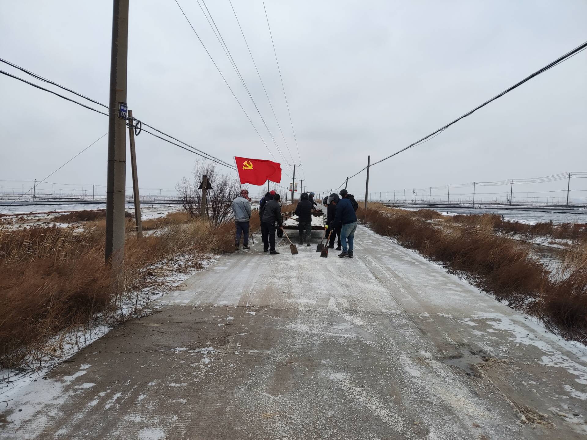為了確保職工的安全出行,埒南制鹽分公司黨支部的全體黨員帶著鐵鍬、融雪劑,早早地來(lái)到現(xiàn)場(chǎng),開(kāi)始了緊張而有序的除冰工作。他們不畏嚴(yán)寒,奮力鏟除路面的冰雪,讓道路重新變得暢通無(wú)阻,確保職工上下班“路路暢通”。(王石)