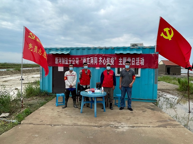 新河制鹽分公司根據(jù)投資公司黨委安排,在零班二期設(shè)立卡點(diǎn),嚴(yán)格落實(shí)領(lǐng)導(dǎo)干部24小時(shí)帶班、值班和疫情突發(fā)狀況報(bào)告等制度,支部亮旗、黨員亮徽、職工亮力,共同織就公司疫情防控網(wǎng)。一個(gè)支部就是一座堡壘,一名黨員就是一面旗幟,全公司黨員紛紛亮出身份,主動(dòng)請(qǐng)纓,沖鋒在前,放棄假期積極投身最需要的地方,用行動(dòng)踐行初心使命,全力打好這場(chǎng)疫情防控阻擊戰(zhàn)?。ㄐ潞狱h支部)