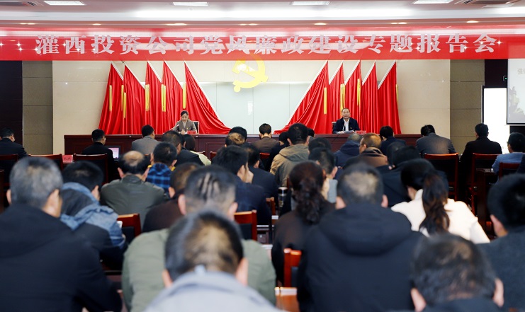 11月17日下午,灌西投資公司邀請集團紀委書記汪群在機關五樓會議室為黨員干部作黨風廉政建設專題報告。投資公司黨委書記、董事長、總經(jīng)理李國文主持會議,公司領導班子成員、各單位黨政負責人、共建單位神特、奧神紀檢人員、機關全體管理人員100余人參加會議。