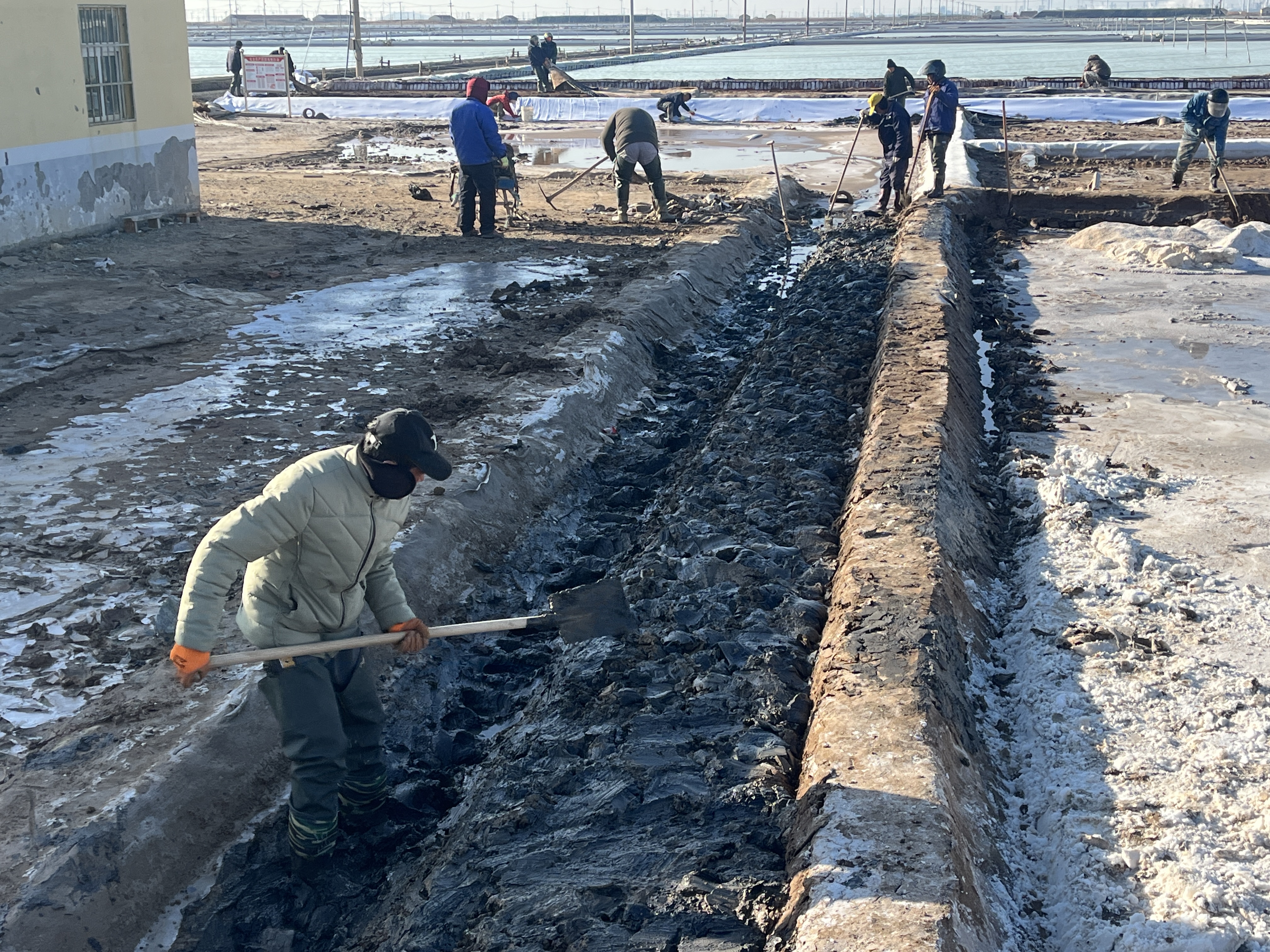 冬季是我們?nèi)諘裰汽}收儲鹵水、扒土塘、整理灘場文明的最佳時期,也是為2024年工作起好頭,邁好步的關(guān)鍵時期,作為重擔我先挑,沖鋒我在前,充分調(diào)動一切積極因素,咬定目標,盡最大努力為班組創(chuàng)造良好的工作條件,發(fā)揮每一個班組的最大潛能,確保越冬鹵水除硫率達到95%以上;鹵水接受率100%;長鹽4萬噸;氯化鈉含純96.2%以上;單耗控制在4.2立方/噸以內(nèi);硫酸根含量控制在0.35%以下,抓好冬季風性咬制鹵水;安全生產(chǎn)無事故。對任務的完成情況做到每周有安排,每周有總結(jié),確保各項工作按部、有序、穩(wěn)定向前推進。成立“指揮部”掛圖作戰(zhàn),打好冬準戰(zhàn)役:各班組按照標準化、規(guī)范化建設(shè)池埝,精心修復結(jié)晶池堵頭埝截,修整池埝150余條,1.28萬余米;
