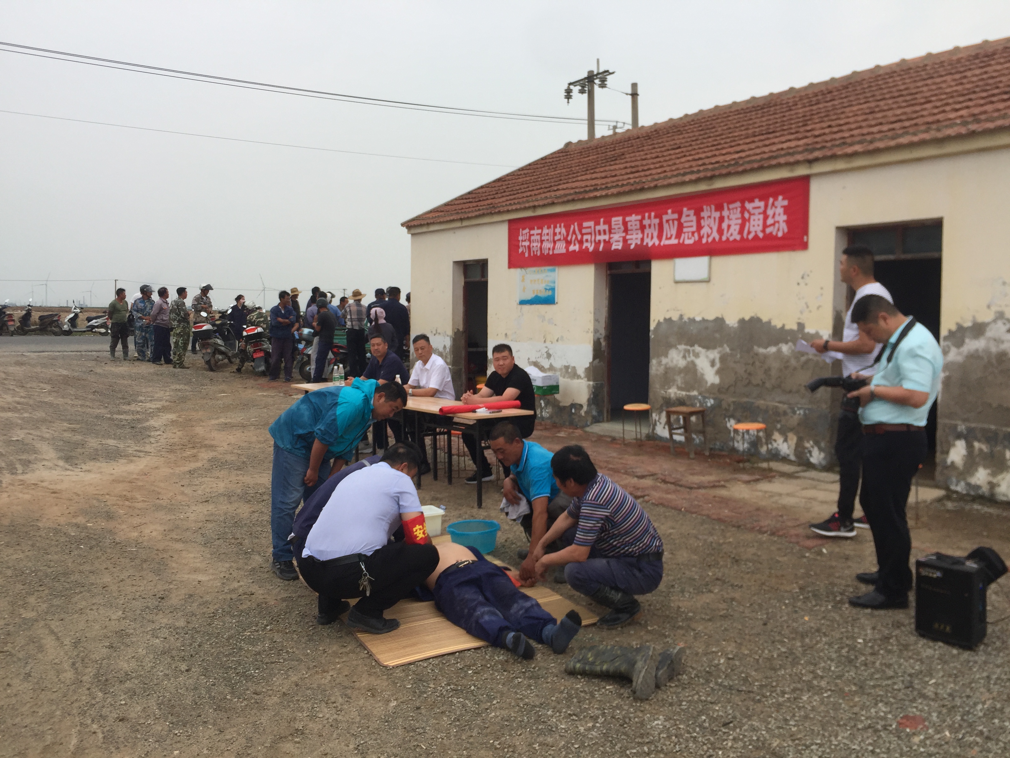 7月2日下午2 :30演練正式開始,本次演練的內(nèi)容為埒南制鹽公司九班員工在正常生產(chǎn)工作中突發(fā)中暑,隨后班上人員開展自救并上報公司啟動應(yīng)急預(yù)案,在演練過程中大家做到職責(zé)分工明確,發(fā)生事故時冷靜、沉著。知道應(yīng)該做什么,如何正確報警以及搶救傷員并疏散人員,讓中暑人員第一時間得到救治。