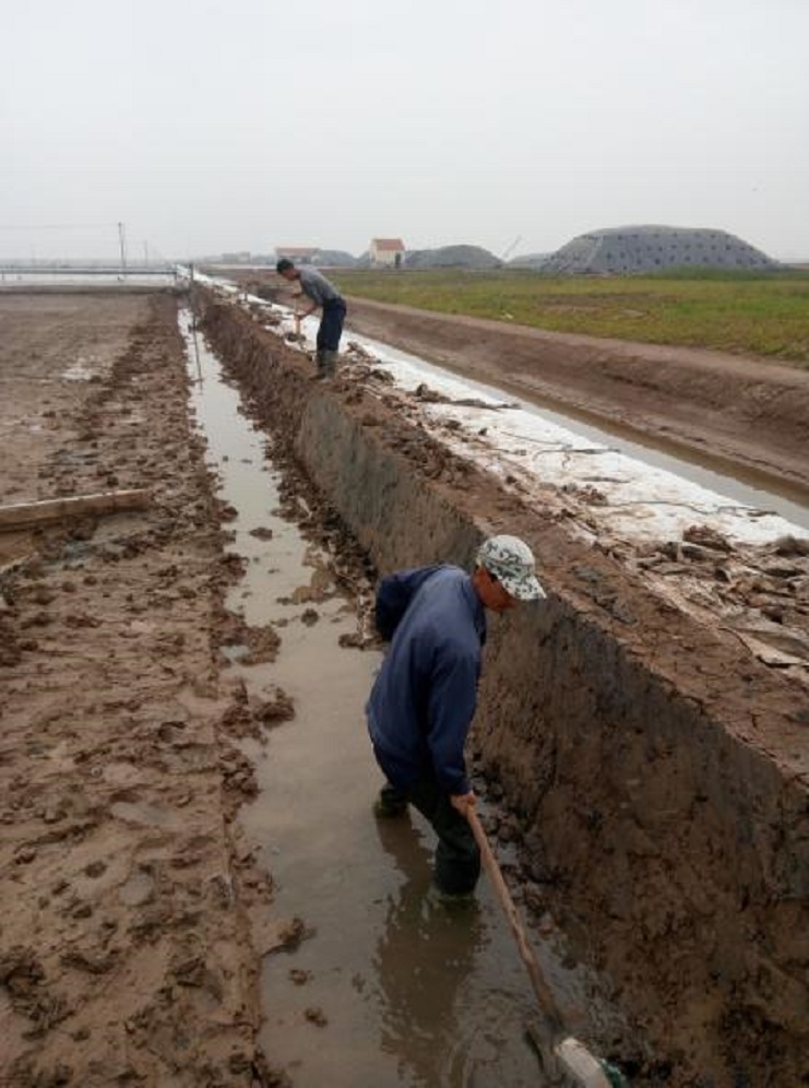 根據(jù)公司生產部門統(tǒng)一要求,在每個生產班組新灌一塊結晶池,埒南制鹽分公司精心布署,細化安排,嚴控時間節(jié)點,抓頭、抓早、抓緊,對生產班組新上的格塊堅持做到現(xiàn)場指導,跟蹤督察,不符合灌池質量標準的堅決不準上馬。(圖為職工在修整結晶池堰)莊忠明