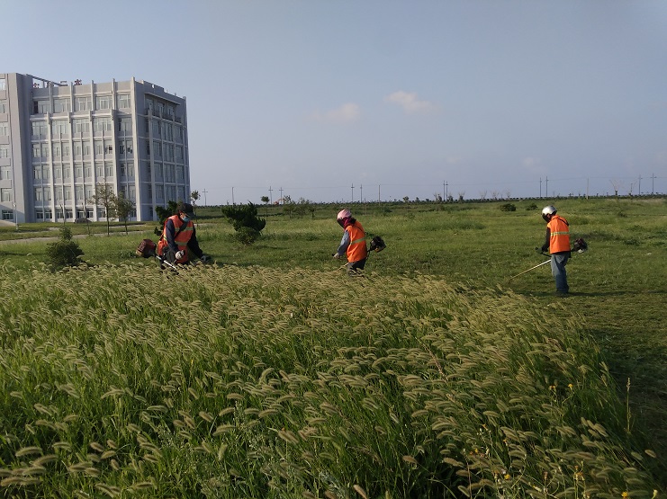 夏季的高溫多雨季節(jié),使道路邊、綠地草坪的雜草瘋長,為保證臨港產(chǎn)業(yè)區(qū)和新城的綠化效果,連日來,南翼公司綠化養(yǎng)護人員冒著烈日酷暑,對區(qū)域內(nèi)的綠化苗木進行修剪,對綠化草坪進行修整,清除雜草,著力打造生態(tài)宜居的美麗環(huán)境。