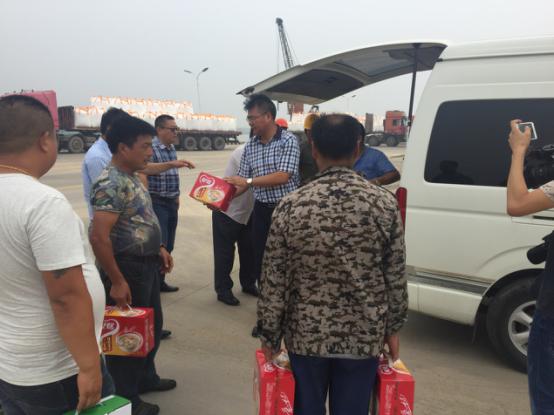 2017年7月18日星期二下午灌西鹽場投資公司領(lǐng)導(dǎo)到宵洋物流有限公司碼頭送清涼看望一線員工!在黨委書記董事長王德志同志、總經(jīng)理李國文同志、工會(huì)主席王保平同志的帶領(lǐng)下親自到我宵洋物流有限公司碼頭看望一線員工,送清涼。炎炎夏日,酷暑當(dāng)頭一線員工永遠(yuǎn)沖鋒在前,領(lǐng)導(dǎo)的關(guān)懷更是永不停止!宵洋物流全體員工致謝?。ㄏ笸跞唬?br />