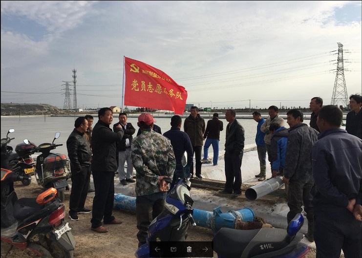 該公司八名黨員班長(zhǎng)為展示支部黨員突擊隊(duì)作用,增強(qiáng)黨員標(biāo)桿作用和服務(wù)意識(shí),將鮮紅的支部黨員志愿服務(wù)隊(duì)旗插在了零班的灘頭。(新河制鹽 邱利民)