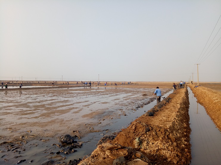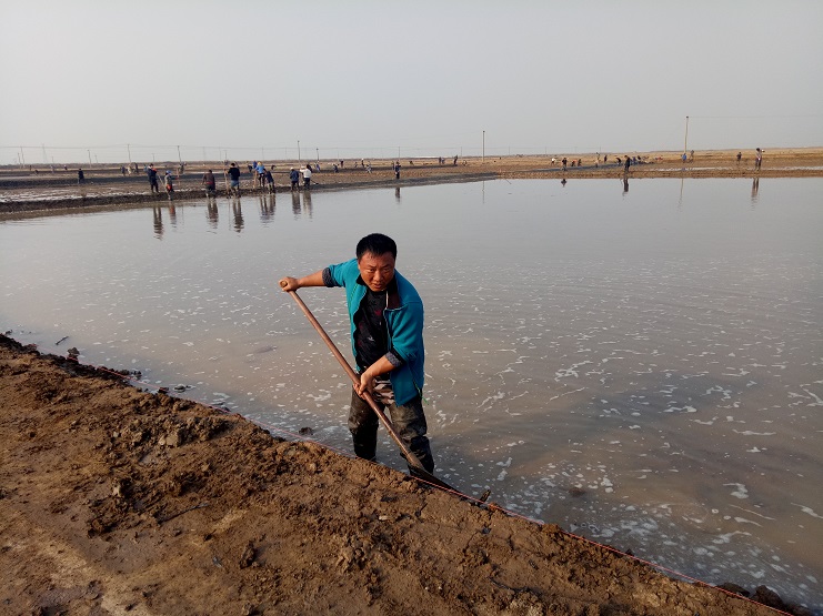 近日,實(shí)業(yè)公司制鹽分公司海鹽基地,一班班組灘場改造呈現(xiàn)出一片繁忙的景象。日曬制鹽新河制鹽分公司、埒南制鹽分公司等兄弟單位近兩日,輪流調(diào)動(dòng)數(shù)百余人參加實(shí)業(yè)公司海鹽基地?fù)茰献鲔髸?huì)戰(zhàn)。現(xiàn)場場面十分壯觀,大家干得熱火朝天:有挖泥澆水的、踩泥打堰的、抹埝找平的......員工們齊心協(xié)力地打好這次攻堅(jiān)戰(zhàn)。本次共計(jì)撈溝做埝近四千米。實(shí)業(yè)公司全體員工對(duì)兩公司的辛勤勞動(dòng)給予了贊許和由衷的感謝。(史祥燕)