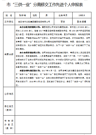 市“三供一業(yè)”分離移交工作先進(jìn)個人申報表