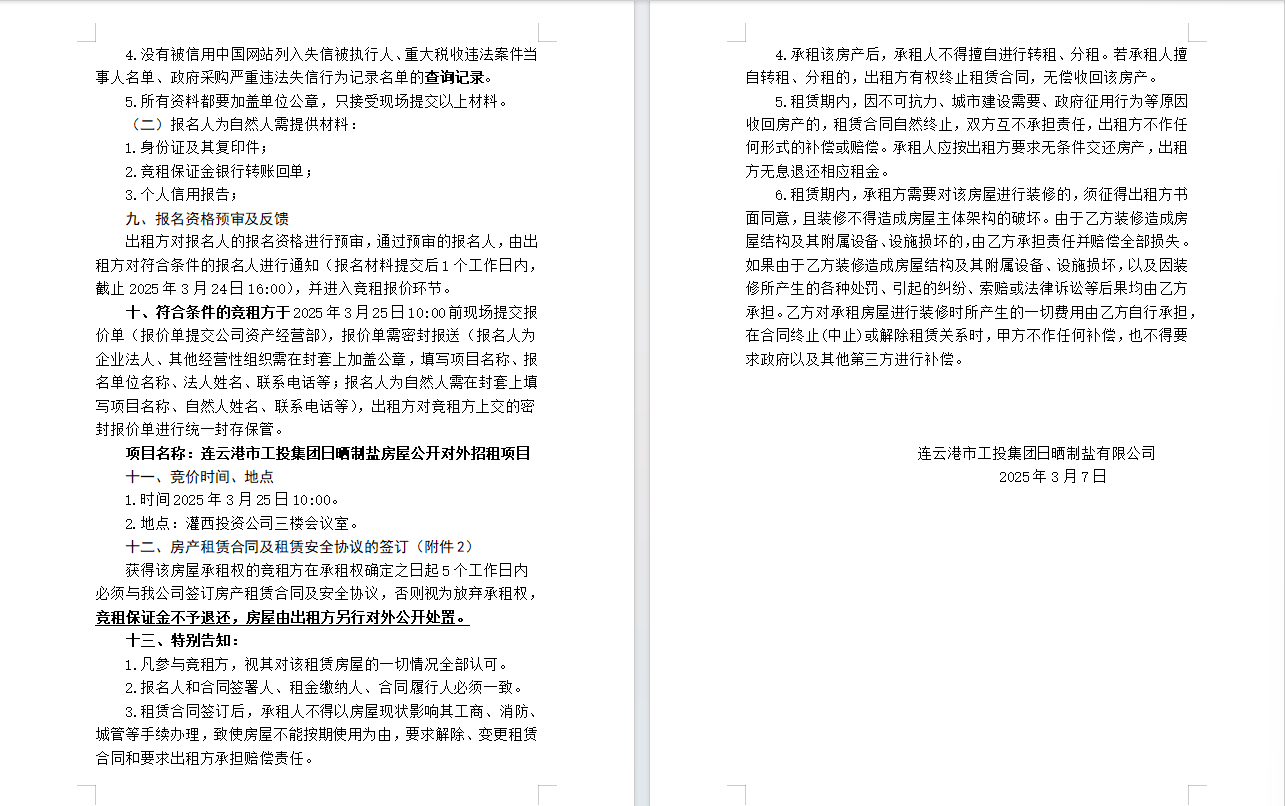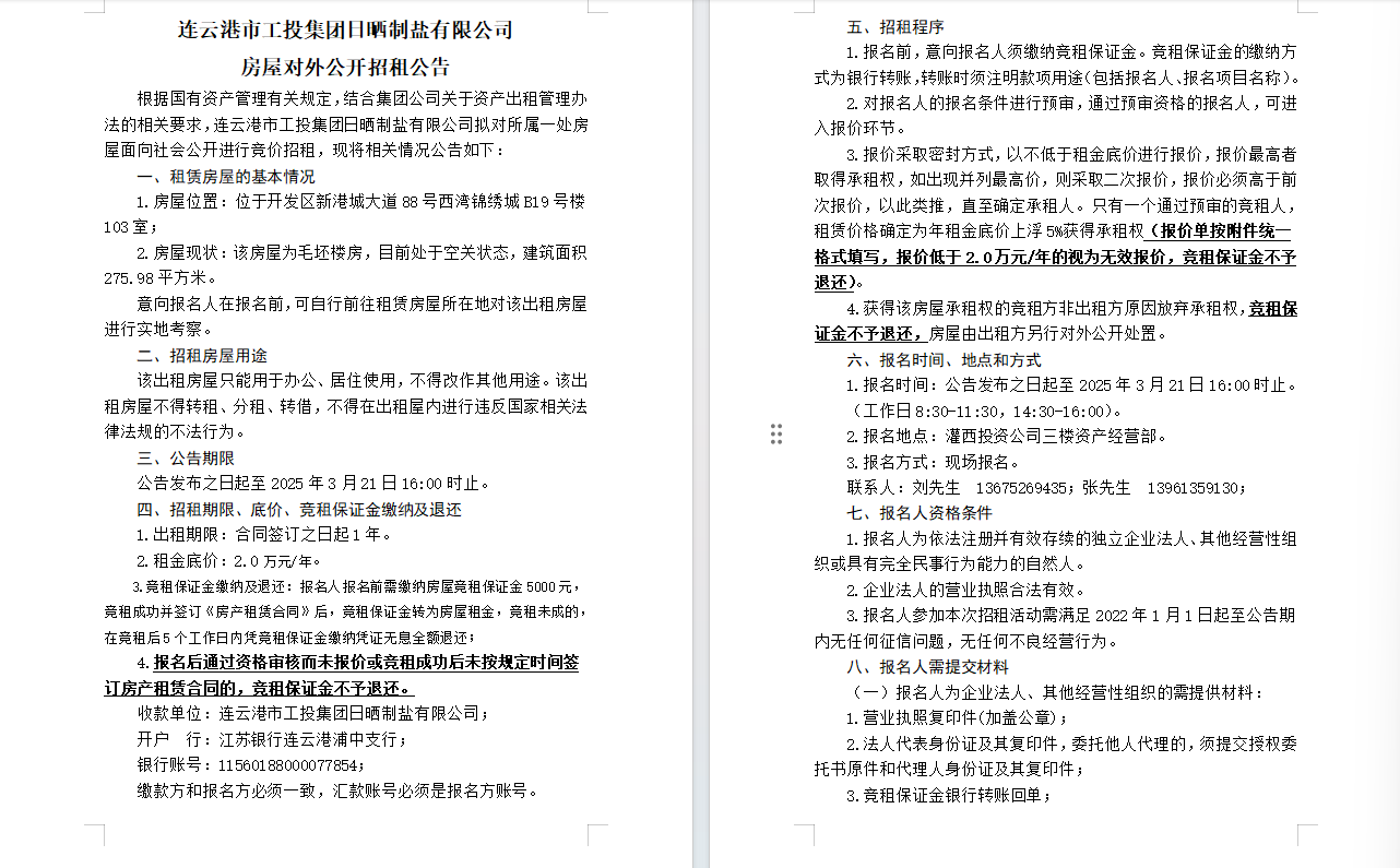 連云港市工投集團(tuán)日曬制鹽有限公司房屋對外公開招租公告