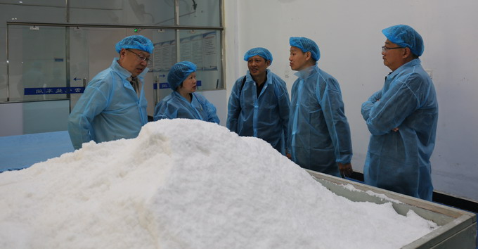 伍茂輝一行參觀了公司雪花鹽車間、包裝鹽車間、加工鹽車間,詳細了解了我公司鹽產(chǎn)品產(chǎn)銷情況;雙方就加強合作事宜進行了洽談,雙方商定在鞏固原有業(yè)務(wù)合作的基礎(chǔ)上,在進一步加強雪花鹽和顆粒鹽等產(chǎn)品的市場開拓方面加強合作交流。(金宣)