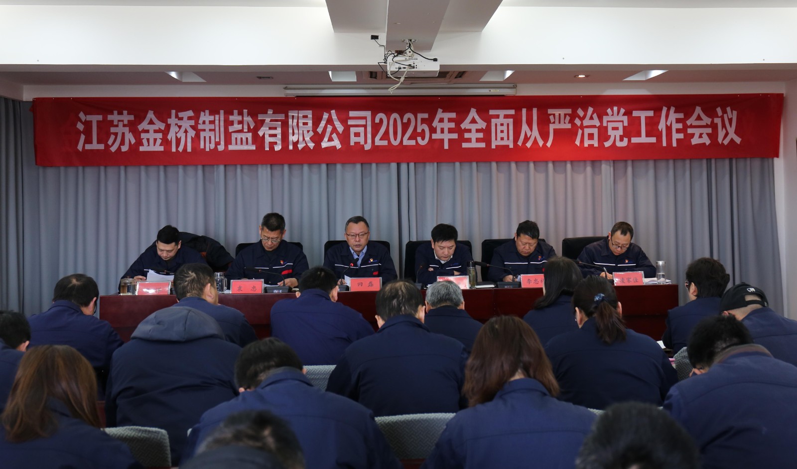 2月14日,金橋制鹽公司黨委召開2025年全面從嚴治黨工作會議,回顧總結(jié)2024年全面從嚴治黨工作,安排部署2025年重點任務(wù),堅定不移推動公司高質(zhì)量發(fā)展。公司黨委書記田磊作黨委工作報告,紀委書記袁忠作紀檢監(jiān)察工作報告,常務(wù)副總經(jīng)理薛化光主持會議。