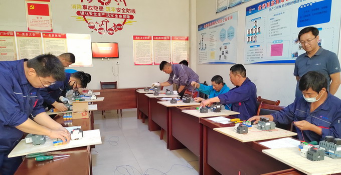 比“巧奪天工”。此次電工比賽內(nèi)容是要求選手在規(guī)定時間內(nèi)完成配線盤的接線并使電機正常運轉(zhuǎn),最終根據(jù)選手用時、操作過程及接線情況等進行評判打分。本次比賽增加了安全文明操作的分值,對選手安全合規(guī)操作提出了更高的要求。