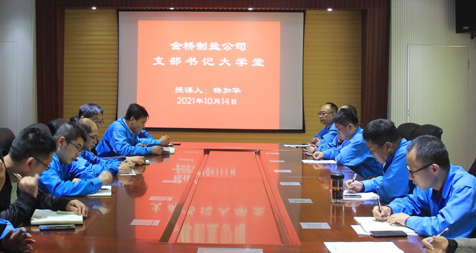 10月14日下午,我公司黨委在四樓黨建活動室組織開展“支部書記大學堂”活動。雪花鹽車間黨支部副書記楊加華以“學黨史守初心 充分發(fā)揮戰(zhàn)斗堡壘作用”為主題,結(jié)合車間工作實際,為各支部黨員干群上了一堂生動的黨課。通過此次活動的開展,引導廣大黨員干群學習百年黨史,牢記初心使命,進一步堅定信心,鼓足干勁,齊心協(xié)力推動全年目標順利實現(xiàn)。(金宣)