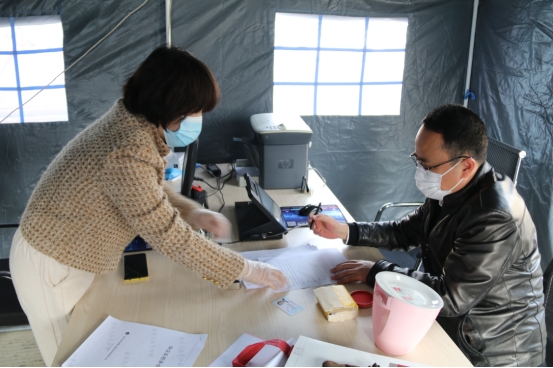 4月6日,工投金融板塊復(fù)工的第一天,來辦理業(yè)務(wù)的人員發(fā)現(xiàn),公司院內(nèi)樹立著一頂嶄新的帳篷,電腦、桌椅、打印機(jī)等辦公設(shè)備放置其中,酒精、免洗液、口罩等防疫物資擺放在帳外醒目位置。 這是工投金融板塊為保證疫情期間疫情防控與業(yè)務(wù)服務(wù)兩不誤,專門打造的特色“防疫業(yè)務(wù)服務(wù)窗口”。 正值疫情期間,而金融板塊的業(yè)務(wù)涉及面廣,流程嚴(yán)謹(jǐn),尤其是窗口業(yè)務(wù)所涉及的簽字、蓋章等環(huán)節(jié)都需要與外來人員面對(duì)面現(xiàn)場辦理,如何化解因疫情而產(chǎn)生的業(yè)務(wù)開展難題,就成為擺在金融板塊干部職工眼前的一大問題。