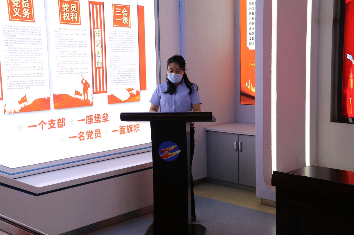 隨后,支部書記徐兵為大家上了一堂題為“增強黨性修養(yǎng),筑牢使命擔當”的專題黨課,他結合黨的歷史及當前國內國際局勢,生動的闡釋黨的革命精神和光輝歷程,旨在讓新黨員感受到了黨的神圣,進一步激發(fā)黨員的愛國熱情和奮斗精神,激勵廣大黨員黨員以自身的實際行動積極實踐誓詞,這堂黨課對于新老黨員們來說,都是一次寶貴的學習機會。黨課最后,支部書記徐兵帶領新老黨員一起,面向鮮紅的黨旗,舉起右拳,重溫入黨誓詞。