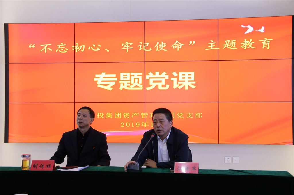 | 為教育引導(dǎo)黨員干部不忘初心,牢記使命,擔(dān)當(dāng)作為,開拓創(chuàng)新,奮力譜寫金融工作新篇章,10月10日下午,資產(chǎn)管理公司黨支部舉行“不忘初心、牢記使命”主題教育黨支部書記講黨課活動(dòng),資產(chǎn)管理公司黨支部書記、董事長(zhǎng)胡傳祥同志講授“初心不改,擔(dān)當(dāng)作為,創(chuàng)造無(wú)愧于時(shí)代的工作業(yè)績(jī)”主題黨課,集團(tuán)黨委第一指導(dǎo)組同志到會(huì)指導(dǎo)。
