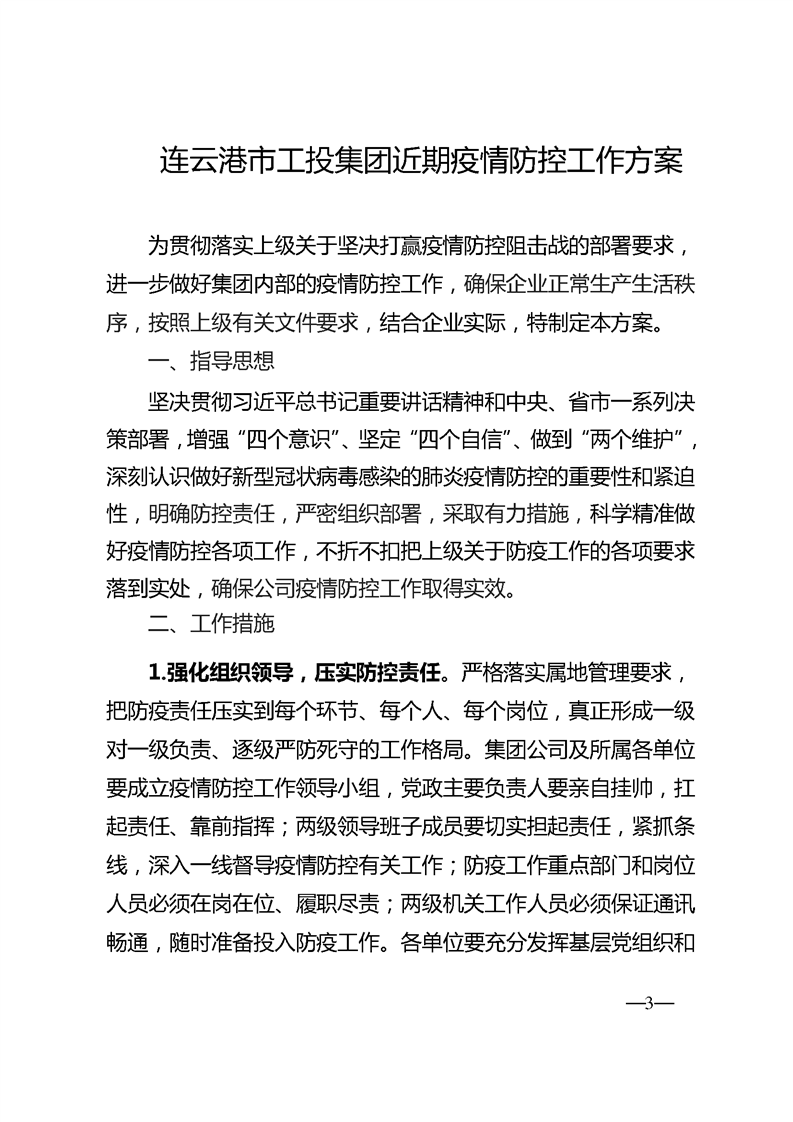 《連云港市工投集團(tuán)近期疫情防控工作方案》的通知